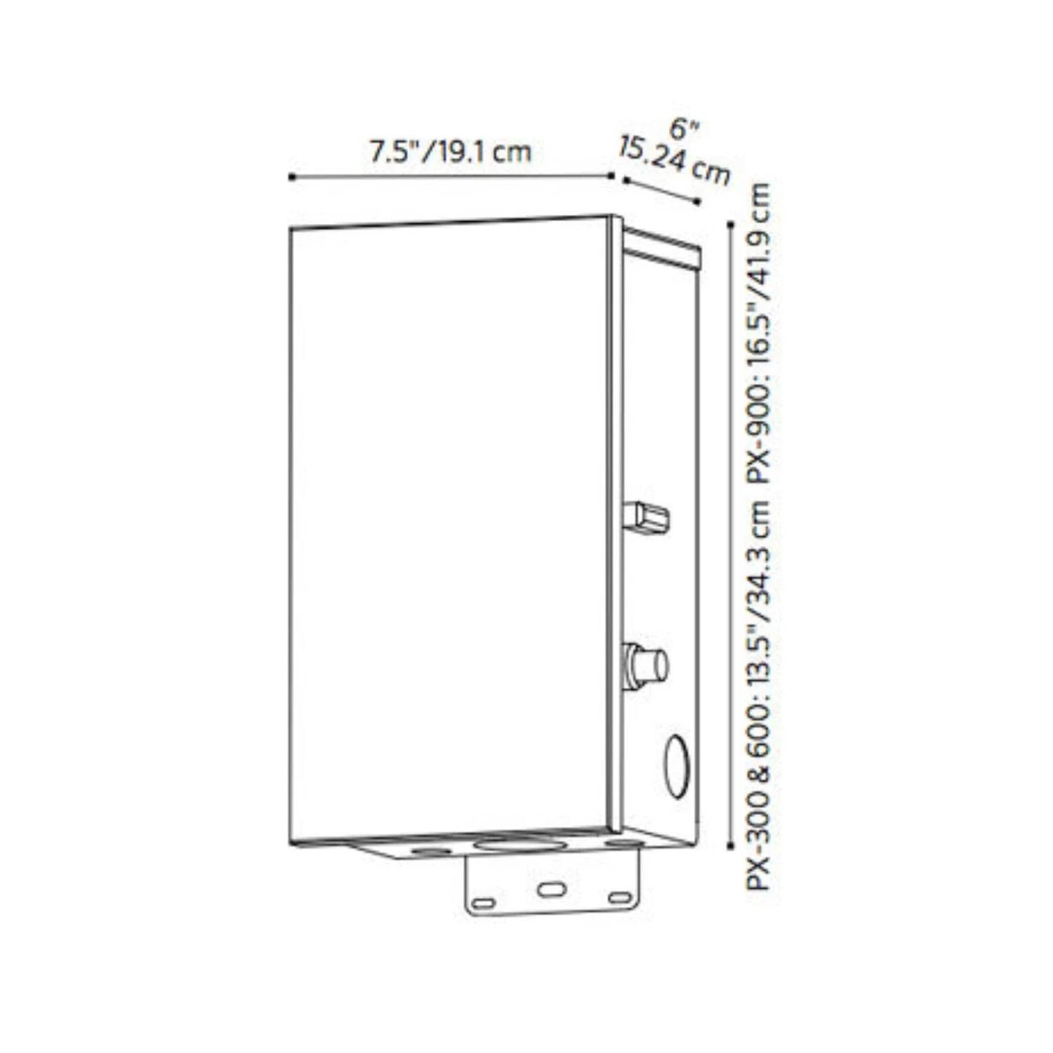 - 7.5″ W x 13.5″ H x 6″ D